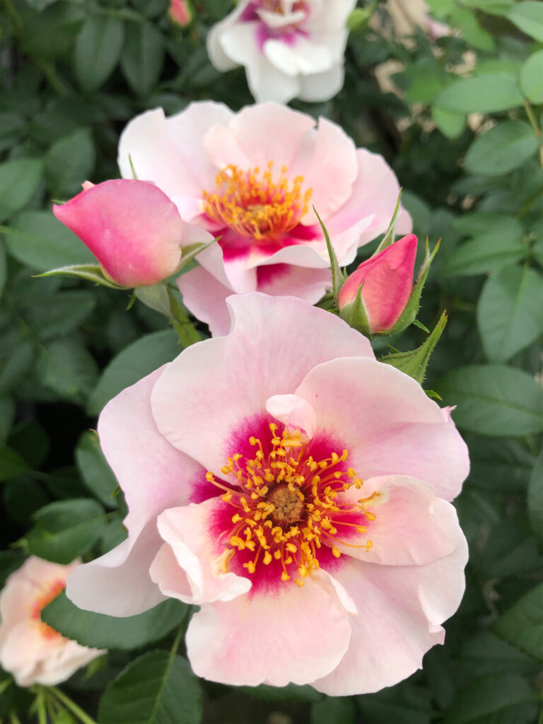 SEE YOU IN PINK est un rosier buisson aux fleurs simples roses au cœur presque rouge. Il est floriflère. -