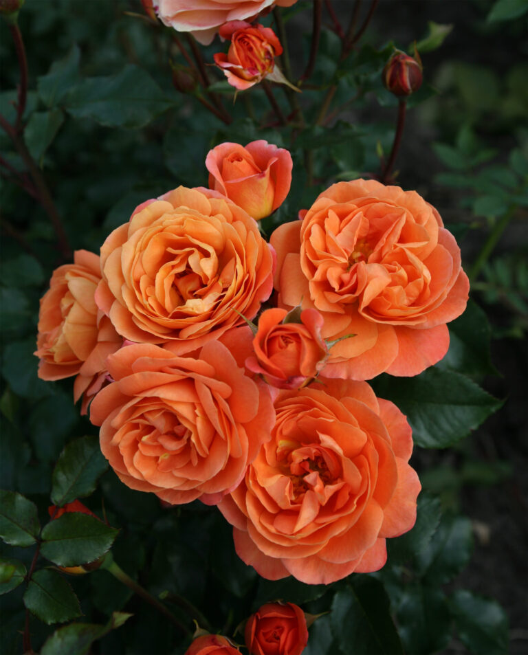 PHOENIX est un rosier buisson à fleurs groupées orangés. Il est floriflère. -
