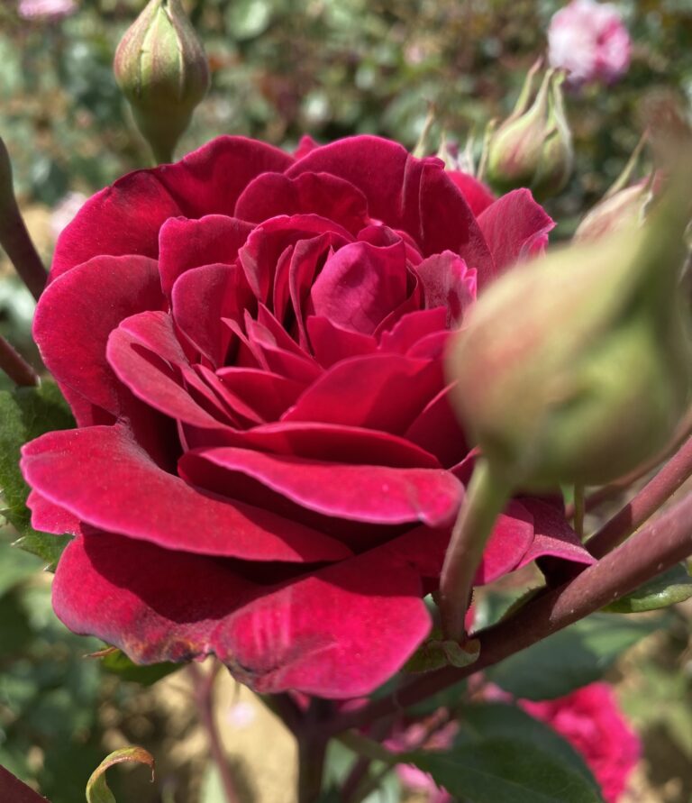 BLACK BACCARA est un rosier buisson à grandes fleurs rouge grenat velouté. Il est également produit en tige. -