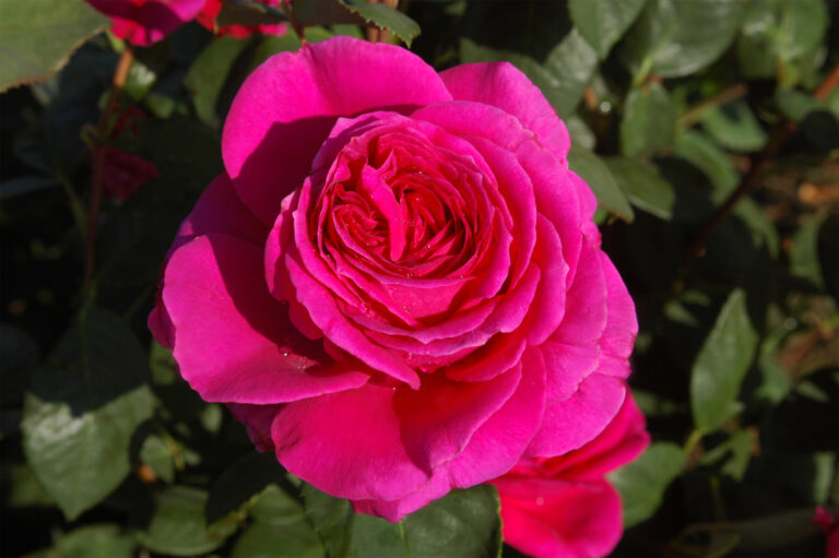 REMEMBER est un rosier buisson aux grandes fleurs rose fuchsia lumineux parfumée et au feuillage vert brillant. Ce rosier présente une bonne vigueur.