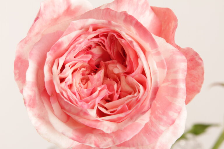 MASCAREST est un rosier aux fleurs originales (pivoine) rose tendre finement strié de nuances plus claires pouvant parfois aller jusqu’à un blanc très pur. -