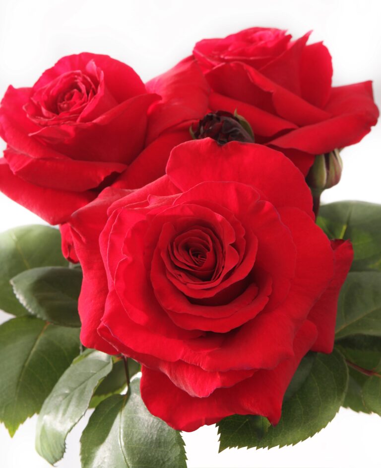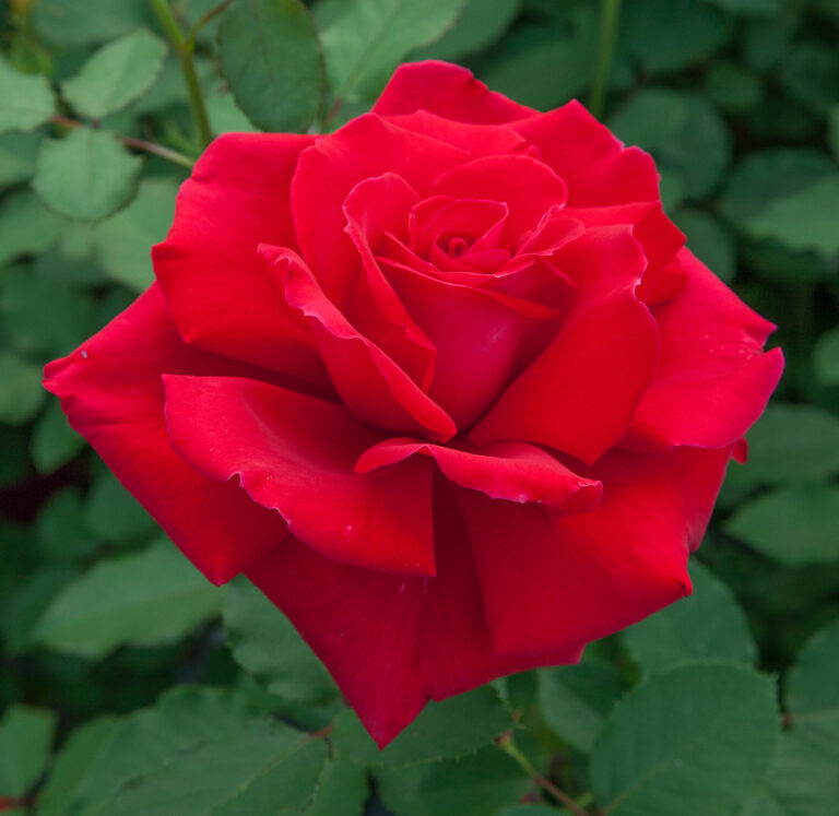 ROUGE ADAM est un rosier buisson à grandes fleurs rouge foncé velouté. -