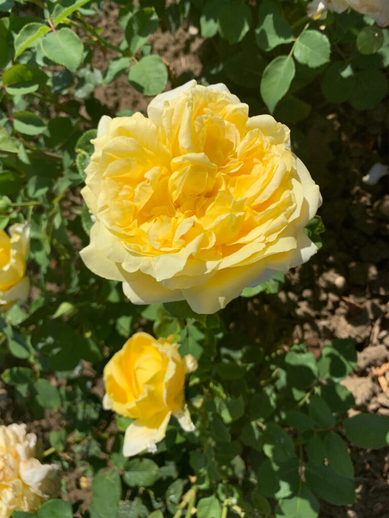 YELLOW FLUSH est un rosier buisson à grandes fleurs d'un vif jaune très lumineux parfumées. Il est résistant aux maladies. -