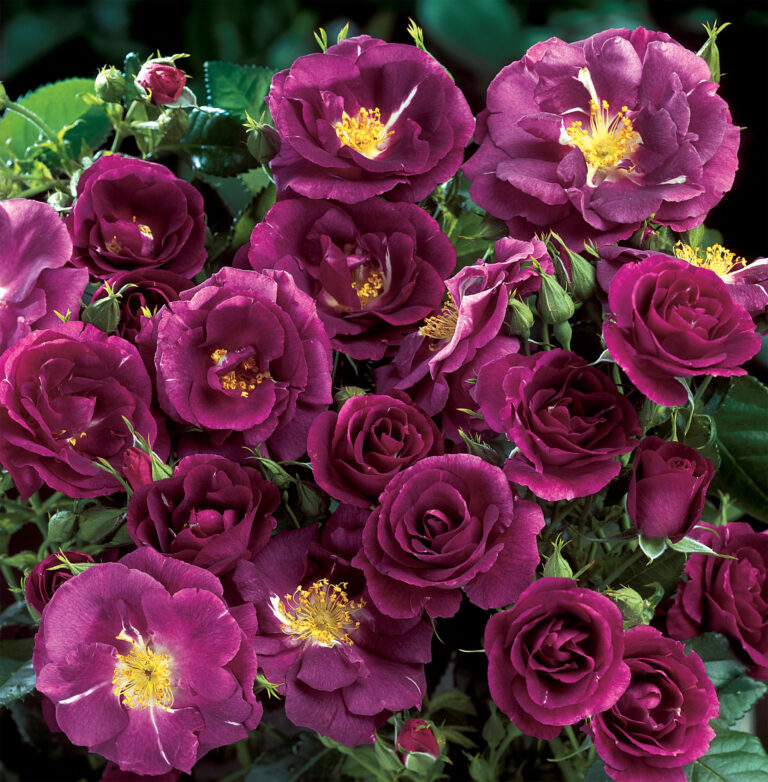 PURPLE LODGE se distingue par sa couleur. Il offre une floraison remonante au parfum d'agrumes. Son feuillage est vert mat. -