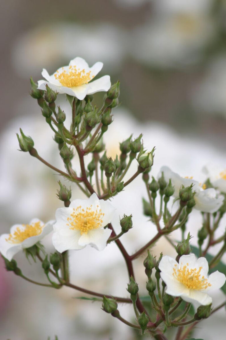 ROSANATURE ALBA est un rosier paysager aux petites fleurs simples, blanches à cœur jaune, réunies en longues panicules. Il est très florifère, mellifère et agréablement parfumé. -