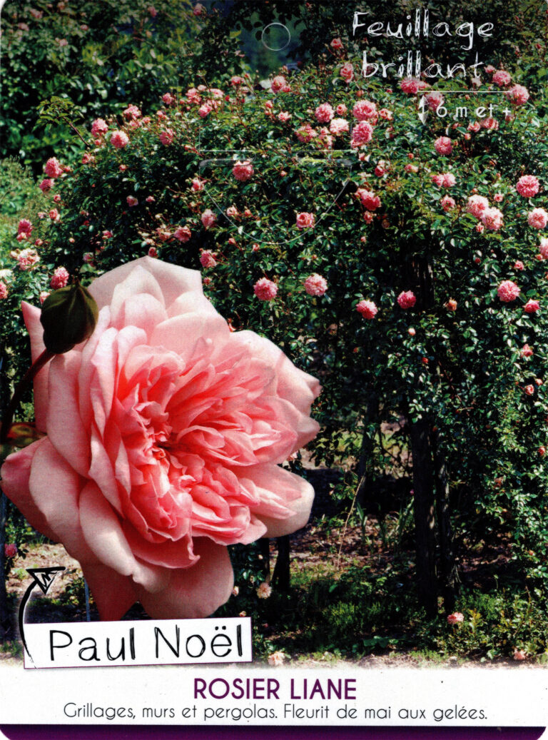 PAUL NOEL est produit en pleureur (170 cm). Ces fleurs sont roses groupées par 2 à 5. Sa floraison dure 5 à 7 semaines. -