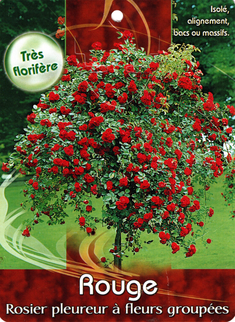 GUIRLANDE FLEURIE est produit pleureur (170cm). Sa floraison est remontante. Les fleurs sont rouge. Son feuillage est résistant. -