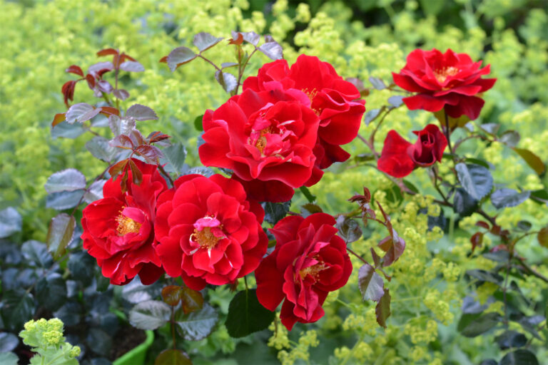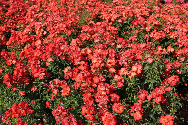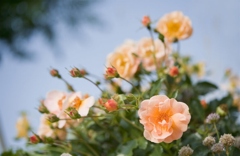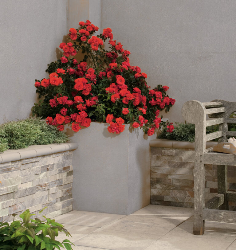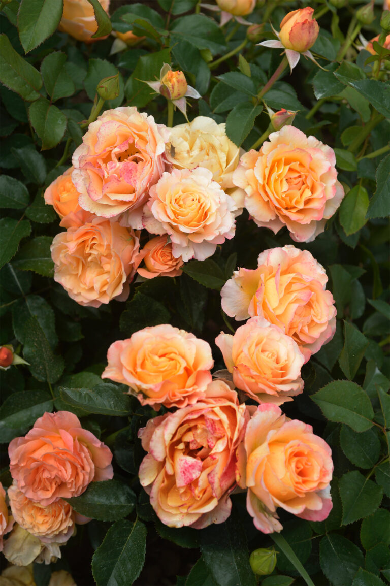 TERRA BOTANICA est un rosier aux fleurs groupées orange lumineux légèrement parfumées. Il est également produit en tige.