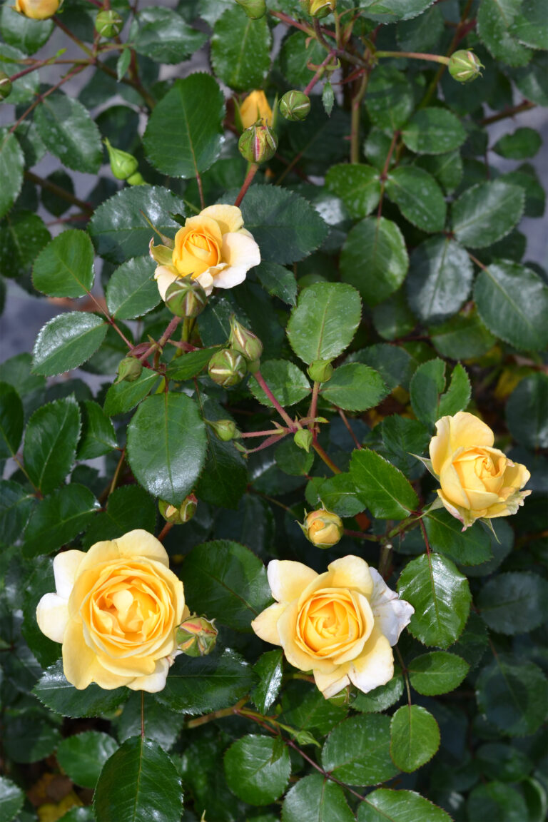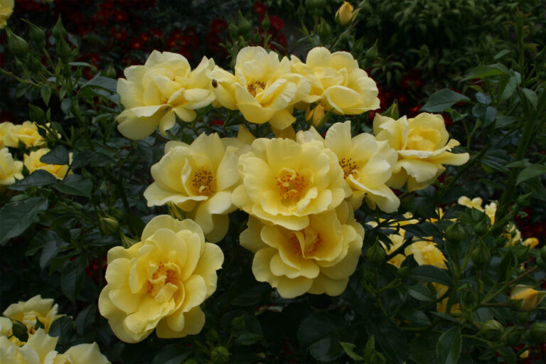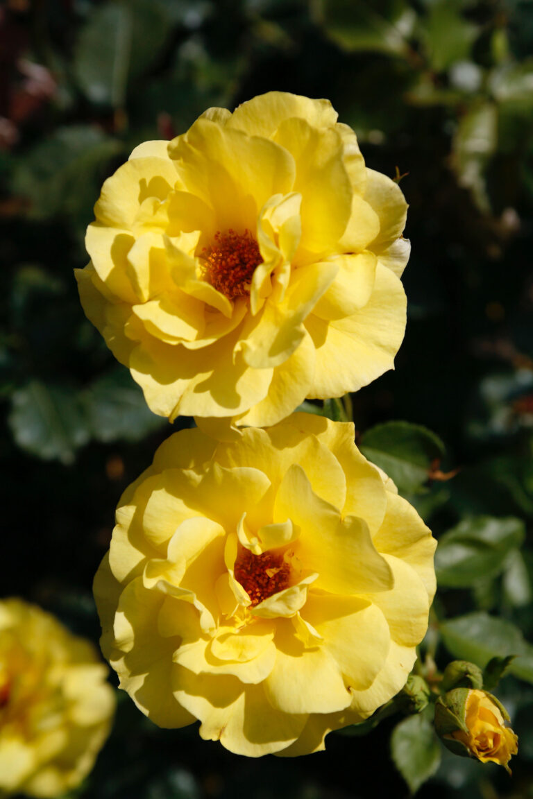 SUNEVA vous est proposé en format tige (110 cm). C'est un rosier jaune pontuées d'étamines orangées très florifère, sans entretien, naturellement résistant aux maladies. -