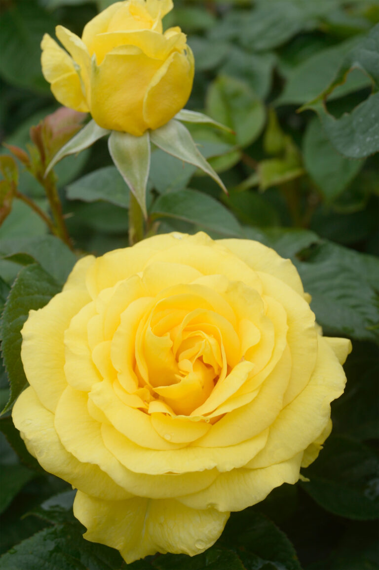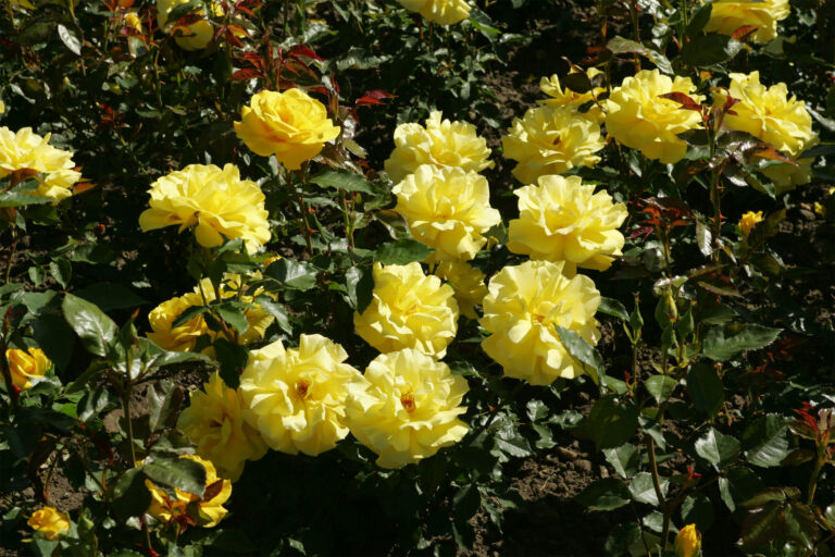 SUNEVA vous est proposé en format tige (110 cm). C'est un rosier jaune pontuées d'étamines orangées très florifère, sans entretien, naturellement résistant aux maladies. -