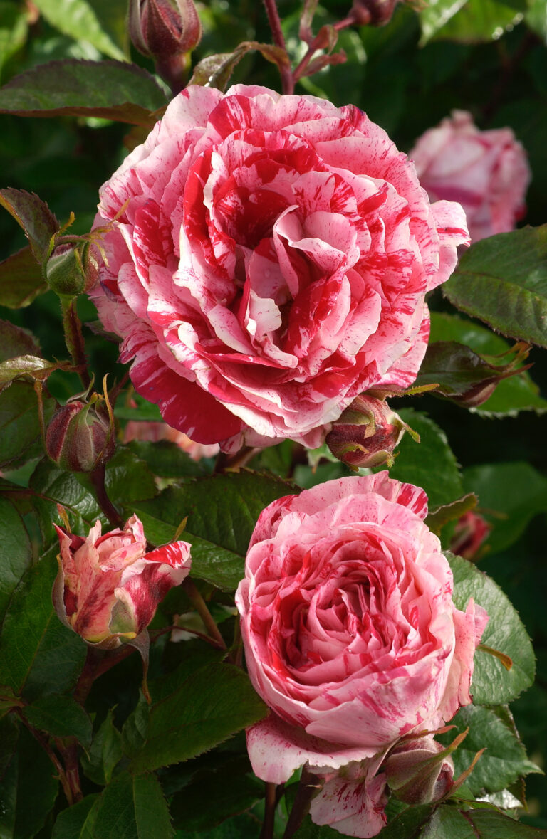 SCENTIMENTAL vous est proposé en format tige (110cm). C'est un rosier aux grandes fleurs rouges striées de blanc parfumées. Il est également produit en buisson. -